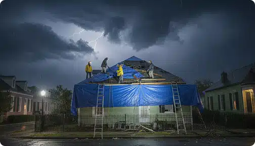 Roof emergencies in New Orleans most often occur during or after storms. The company maintains around-the-clock availability precisely because weather events here do not follow a business schedule.