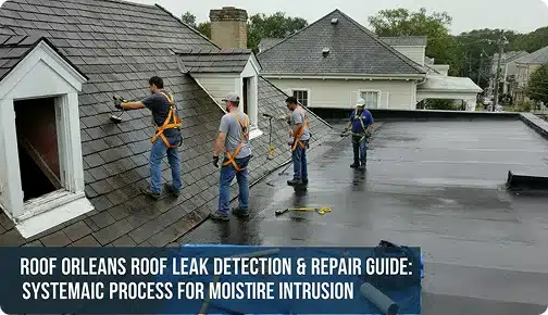 Roof leak detection and repair are one of the highest-demand services in this region. New Orleans homes and commercial buildings deal with persistent moisture intrusion from aging shingles, failed flashing, and ponding water on flat sections.